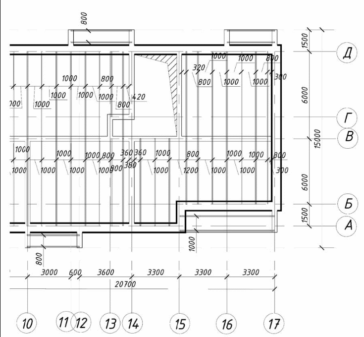 Перекрытия по железобетонным балкам таврового сечения просты по конструкции, имеют малый вес монтажных элементов, но трудоемки. Шаг балок назначают в зависимости от нагрузки: 600, 800, 1000 мм.