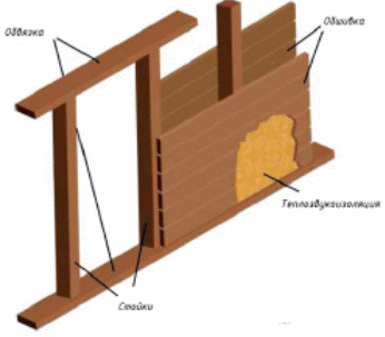 Рис. 61. Вид на каркасно-обшивную деревянную перегородку