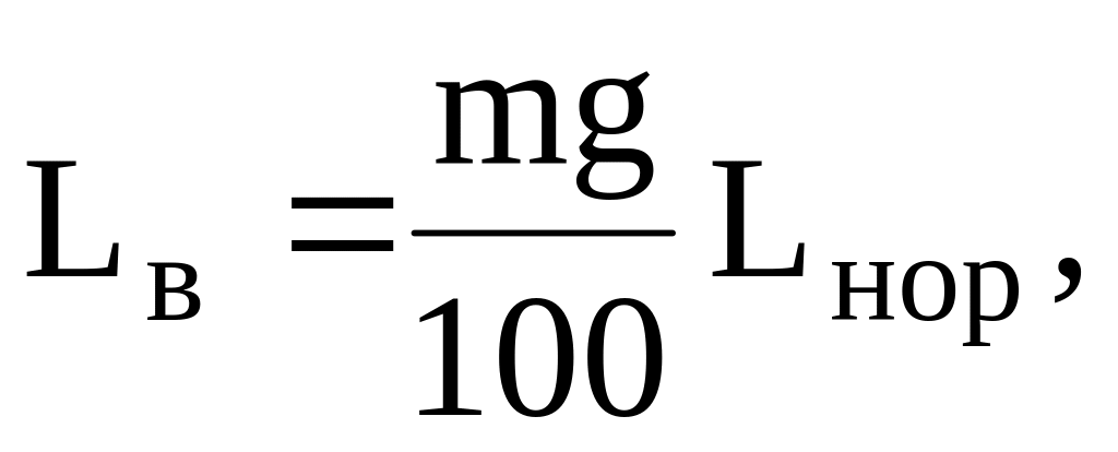 - •Lнор – нормативный воздухообмен на 100 кг живой массы животных, м3/с,