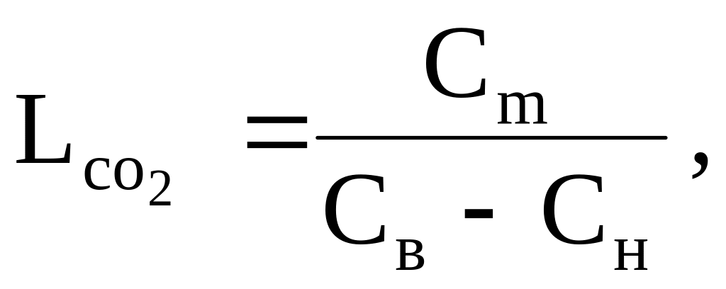Св = 2,5·10–3 [1, с. 6 ]; Сн – концентрация СО2 в свежем приточном воздухе, м3/м3,