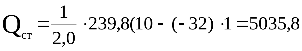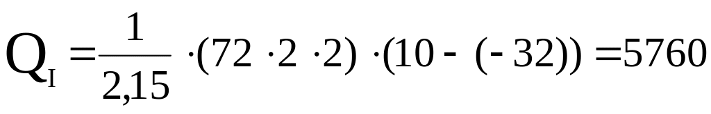 По формуле (14) определяем потери тепла через стены, окна, двери, ворота, кровлю помещения: