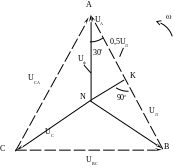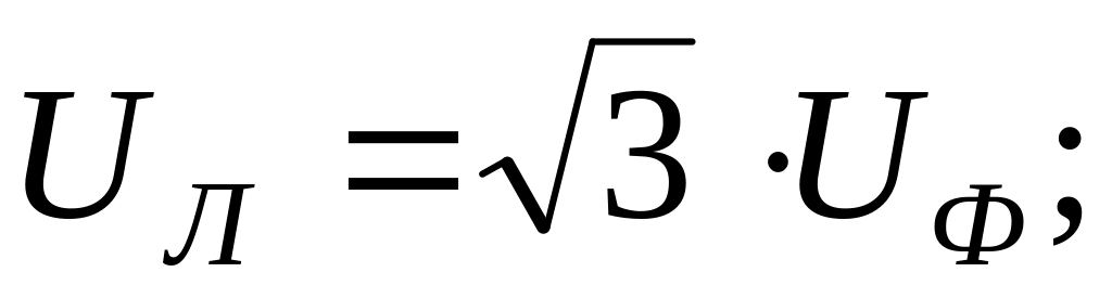 Для комплексов линейных и фазных напряжений по II закону Кирхгофа справедливы следующие соотношения: