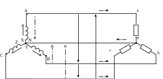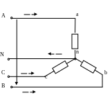 При таком соединении концы фаз X, Y, Z соединяются в одну точку, называемую нейтральной N.
