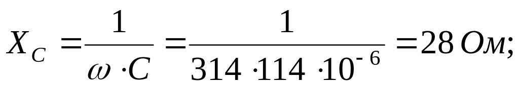 емкостное сопротивление, Ом;