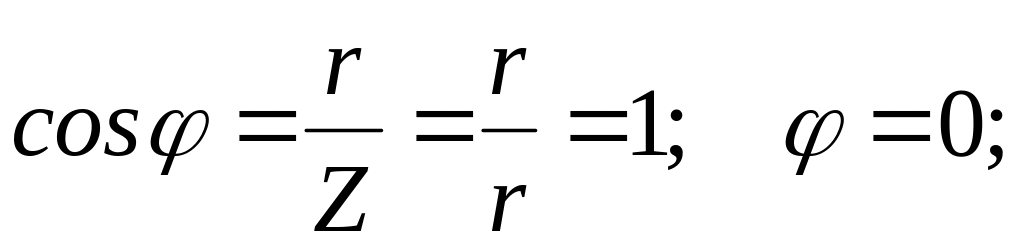 1) Полное сопротивление цепи равно активному сопротивлению