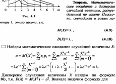 Этот з-н с параметром λ > 0, если она принимает значения 0, 1, 2,..., m (бесконечное, но счетное множ-во значений) с вер-стями P(X=m)=λme- λ \m! . (n→∞, p→0).