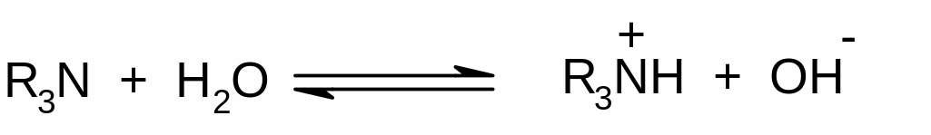 Б) Взаимодействие с водой. Водные растворы аминов имеют щелочную реакцию за счет образования гидроксид-ионов: