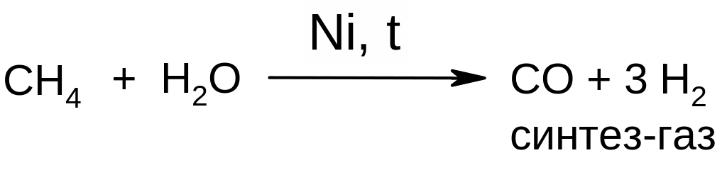 4) Конверсия метана с водяным паром в смесь углерод(II)-оксида и водорода: |