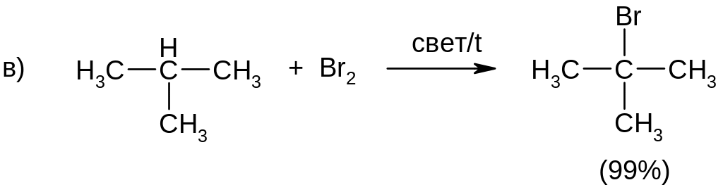 Бром менее активен и реакция бромирования гораздо более избирательна.