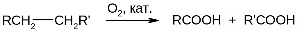 2) Неполное окисление. Происходит в присутствии катализаторов. При высоких температурах может сопровождаться разрывом С-С связей.