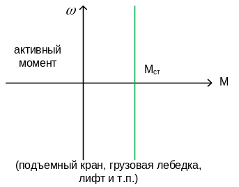 Момент статический ( ) зависит от механических свойств механизма. Он может быть как постоянным (активным), не зависящим от скорости ( ), так и переменным (реактивным), в той или иной степени зависящей от нее.