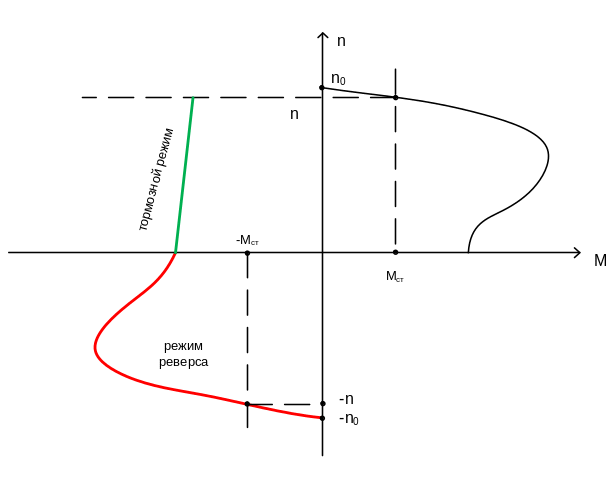 Механическая характеристика торможения противовключением (и реверса) имеет вид:
