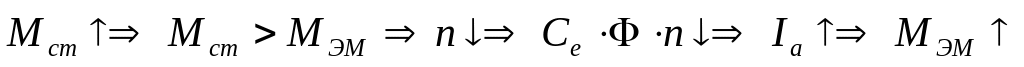 увеличивается пока не станет равным ( - установившийся режим работы).