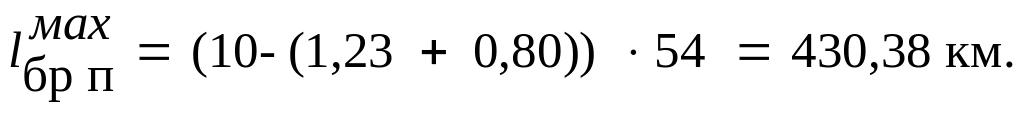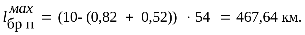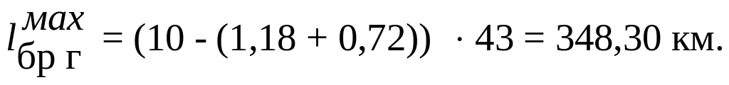 Максимальное расстояние, которое может проехать локомотивная бригада без отдыха при приемке и сдаче на станционных путях для грузового движения определяется по формуле ().
