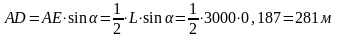 Повна глибина стовбура = AG + 25 (глибина зумпфа) =396 + 25 = 421 м. Повна глибина розробки = FK + наноси = L·sinα + наноси, оскільки