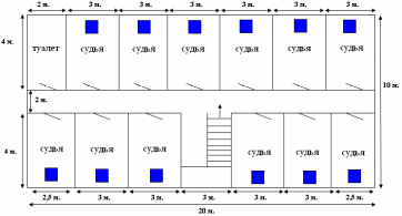 Кабинеты судей: На этаже расположено 6 кабинетов судей, площадь пяти из них составляет 12 м2, а оставшегося 10 м2. В каждом кабинете расположено по одному персональному компьютеру (рис. 6).