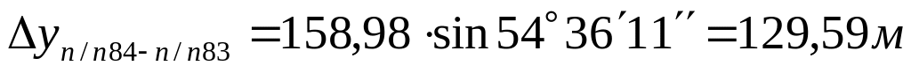 Координаты исходных пунктов п/п84 и п/п83 берутся из параграфа 1.1 (задача 2). Высоты точек п/п84 и п/п83 вычисляются: