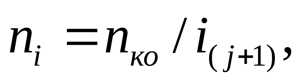 бұл жерде nко – жүргіш қозғалтқыш білігінің айналу жиілігі; j - сораптың иінді білігімен алынатын айналу жиілігін индексі (1,2, ..., 8); (j+1) - бүкіл трансмиссияның беріліс санының индексі.