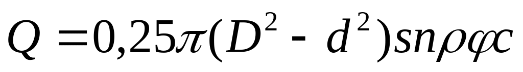 бұл жерде D – шнек оралуының сыртқы диаметрі; d - шнек оралуының ішкі диаметрі; s - шнек оралуының жүрісі; p - құмның тығыздығы; n - шнектің айналу жиілігі; ψ - шнектің толтырылу коэффициенті; с - шнектің еңкіш орналасқанда оның құммен толтырылуының азаюын ескеретін коэффициент, с=0,85-0,7.