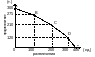 Точка А на графике показывает, что экономика при имеющихся ресурсах может производить только 300 т продовольствия, а точка Е – только 400 единиц развлечений, точка С – 210 т продовольствия и 200 единиц развлечений. Прирост производства развлечений сопровождается сокращением производства продовольствия (движение от точки А к В, С, D, Е).