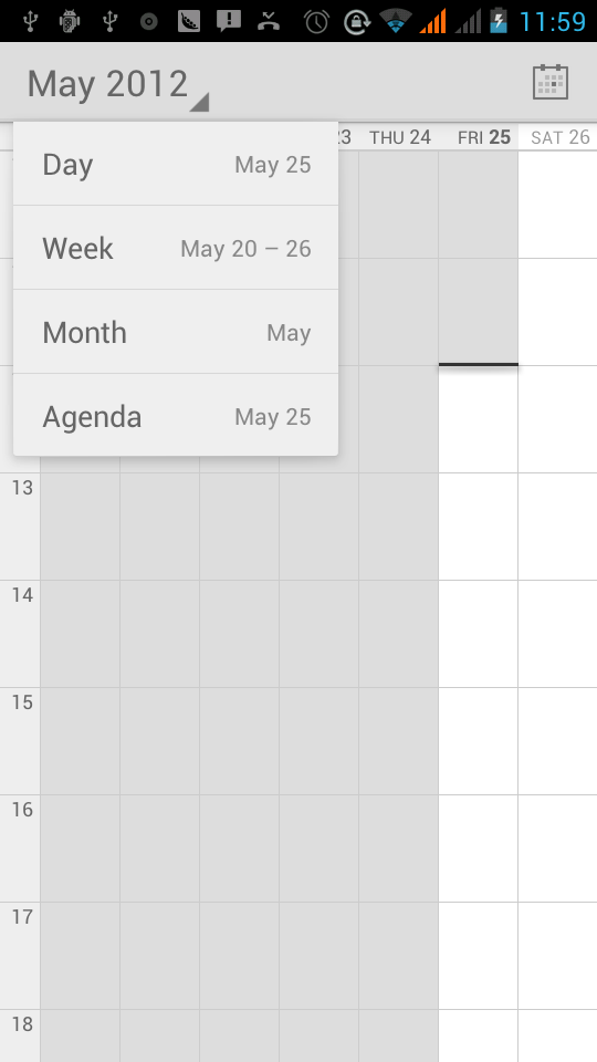 Load Goggles accounts, enter the application, In the interface of month or week will use gray to highlight the day. Display default the date on the current month.