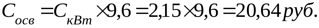 При расчете количества затраченной осветительной энергии учитывается тот факт, что затраты электроэнергии должны быть не менее 0,08кВт/м2 в час, то есть Зэл=0,03кВт/ м2 в час.