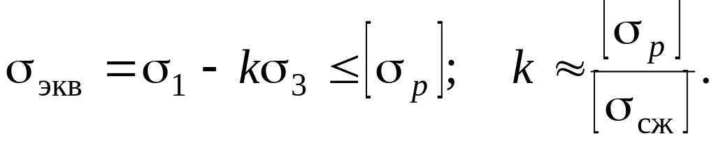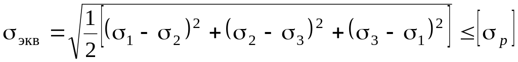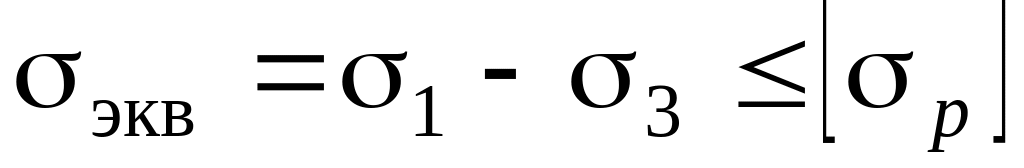 Условие прочности по третьей теории прочности имеет вид