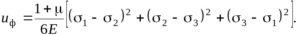 При объемном напряженном состоянии удельная потенциальная энергия изменения формы, выраженная через главные напряжения, определяется следующим уравнением: