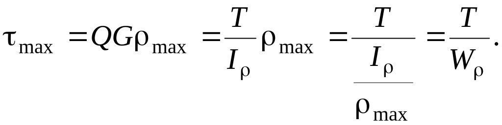 Таким образом, максимальное касательное напряжение в поперечном сечении бруса равно частному от деления крутящего момента на полярный момент сопротивления.