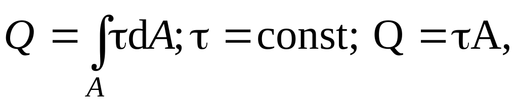 Внутренняя поперечная сила при чистом сдвиге определяется методом сечений. Распределение касательных напряжений принимается равномерным и тогда связь между поперечной силой и касательным напряжением имеет вид: