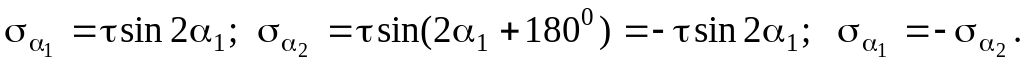При чистом сдвиге нормальные напряжения на любых двух взаимно перпендикулярных площадках равны друг другу по модулю и противоположны по направлению.