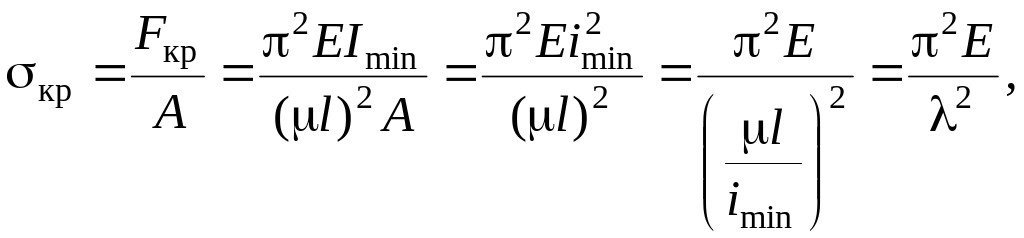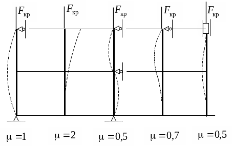 где μ – коэффициент приведения длины, зависящий от способа закрепления концов стержня (рис. 32).