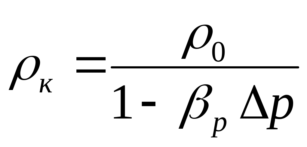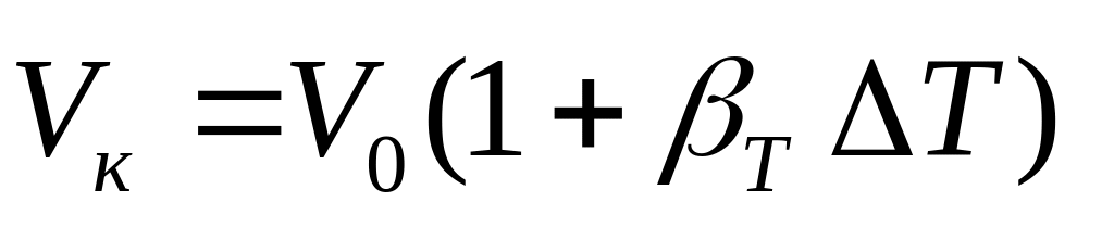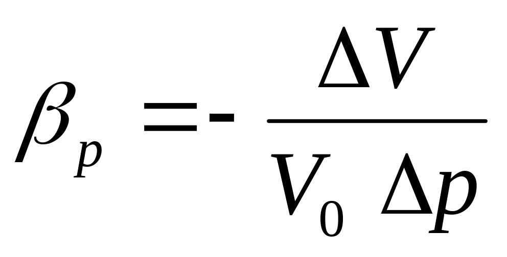 где V0 – первоначальный объем жидкости, м3; V – изменение первоначального объема (м3) при изменении первоначального давления р0 на величину р (Па).
