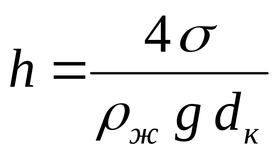 Высота подъема или опускания жидкости в капилляре h (м) определяется по формуле:
