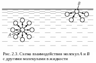 молекул жидкости и молекул твердого