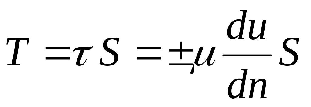 При постоянстве τ касательных напряжений по всей поверхности соприкасающихся слоев полная касательная сила (сила трения) Т будет равна: