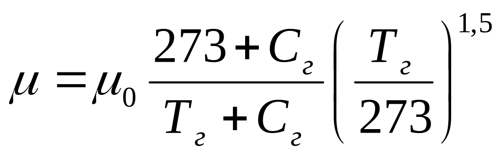 где μ0 – динамическая вязкость газа при 0 оС; Тг – температура газа, К; Сг – постоянная, зависящая от вида газа: для воздуха Сг=130,5.