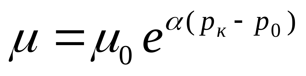 где и 0 - динамическая вязкость жидкости при давлении рк и р0, соответственно, Па∙с; - коэффициент, зависящий от температуры жидкости (при высоких температурах =0,02 , низких – = 0,03).