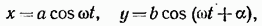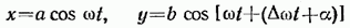 т. е. в уравнение эллипса, приведенного к координатным осям, причем полуоси эллипса равны соответствующим амплитудам колебаний.