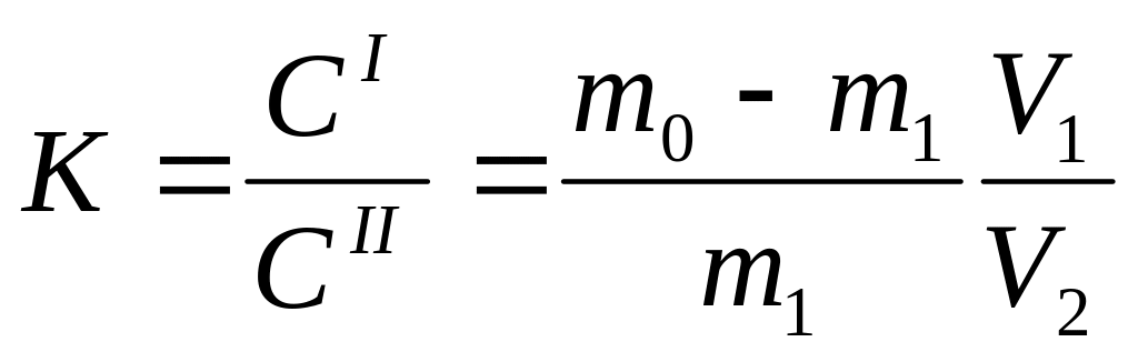 Если к двум несмешивающимся жидкостям добавить третий компонент, растворимый в обеих жид-ях, то он распределится между ними в определённом количественном соотношении. Это соотношение есть величина постоянная и называется термодинамическая коэффициентом распределения K: