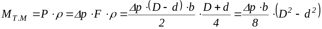 Расчётная величина крутящего момента М на валу рассматриваемого гидроцилиндра с одной пластиной равна произведению силы Р, развиваемой перепадом давления жидкости Δp=pР-pСЛ на рабочую площадь F пластины, на плечо приложения этой силы - расстояние от оси вращения до центра давления рабочей площади пластины (рис.28,а):