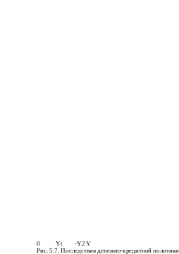 Результат денежно-кредитной политики: ставка процента понижается с г1 до г2, а уровень национального дохода увеличивается с Y до Y2.