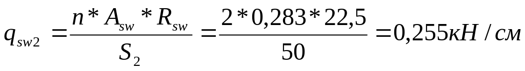 Принимаем S1 = 10 см < h/3 = 26,6см. Фактическое значение интенсивности поперечного армирования :