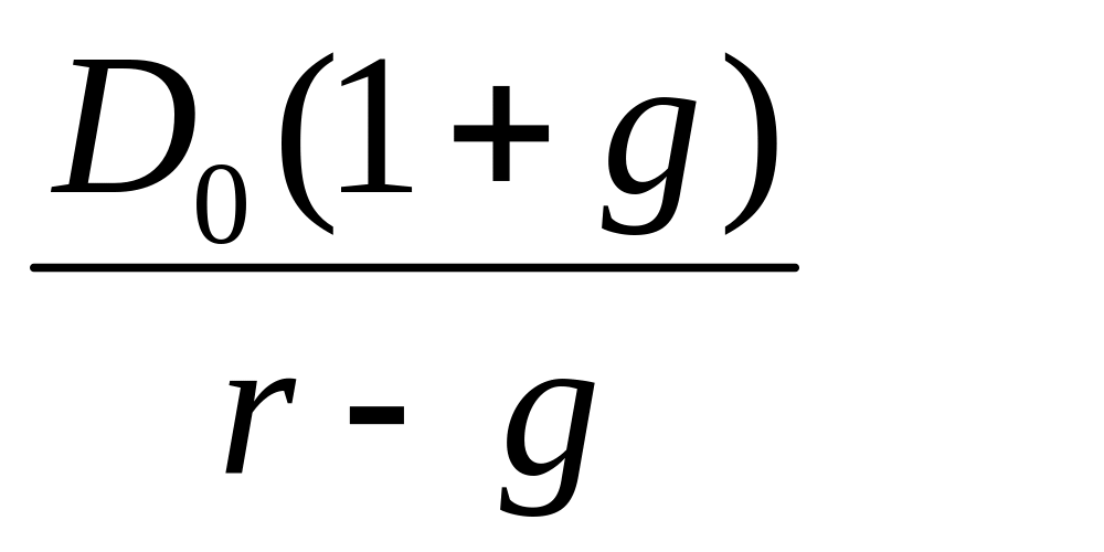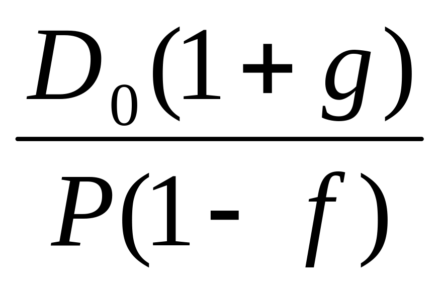Модель роста дивидендов: при постоянном темпе роста дивидендов g в каждый из периодов времени t , цена акции (Р) равна