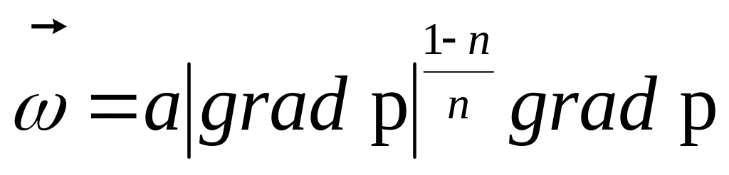 а, n – материальные константы пористой среды. n = 1 – 2. Если n = 2, то формула (3.30) называется формулой Краснопольского, который положил, что при отклонении от закона Дарси зависимость между градиентом давления и скоростью фильтрации квадратичная.