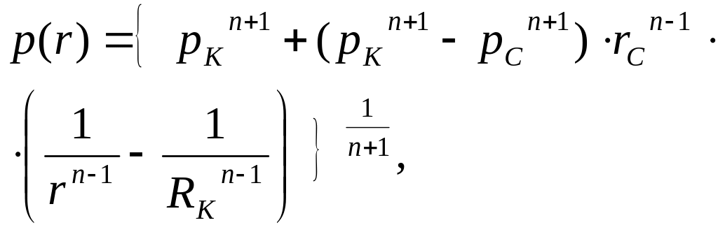 Распределение давления р(r) rc ≤ r ≤ Rk |