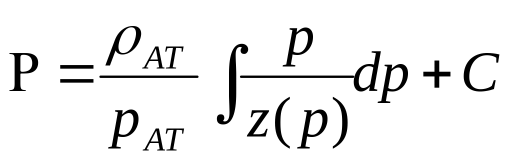 Для изотермической фильтрации реального газа зависимость плотности от давления принимает вид