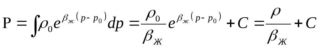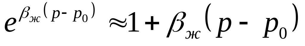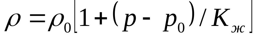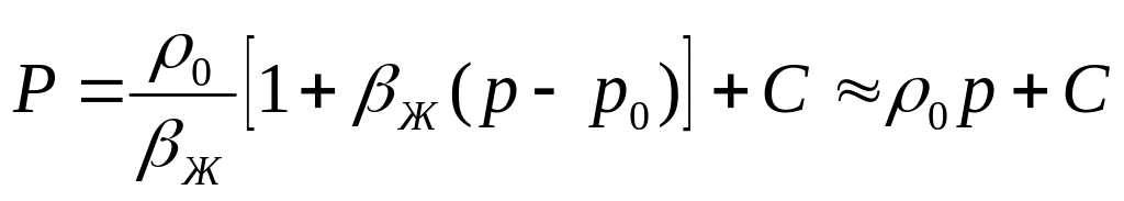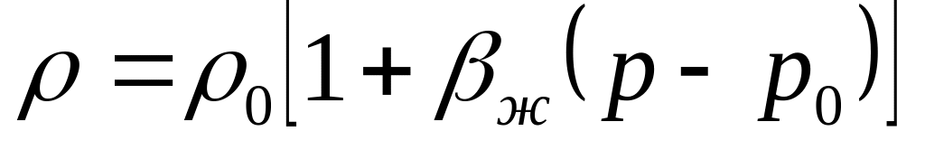 При этом получаем линейную зависимость плотности упругой слабосжимаемой жидкости при небольших перепадах давления: