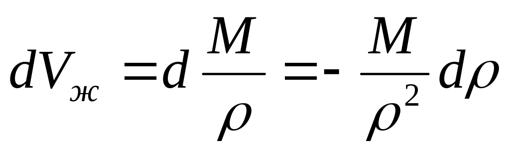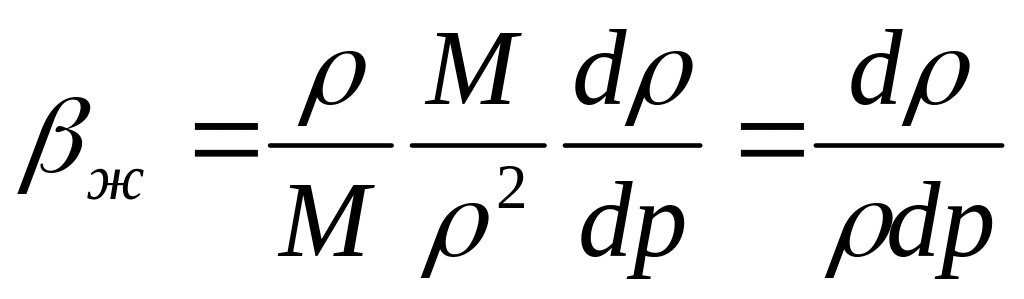 Знак «-» поставлен для того, чтобы коэффициент объемного сжатия жидкости был положительной величиной. При увеличении давления (dp >0) уменьшается (dVж<0) и наоборот. Коэффициент объемного сжатия считается универсальной постоянной и не зависит от температуры и давления.