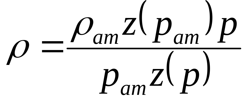 где z - коэффициент, характеризующий степень отклонения состояния реального газа от закона идеальных газов (коэффициент сверхсжимаемости) и зависящий от давления и температуры z = z(p, Т). Значения коэффициента сверхсжимаемости z справочные данные (определяются по графикам Д. Брауна).